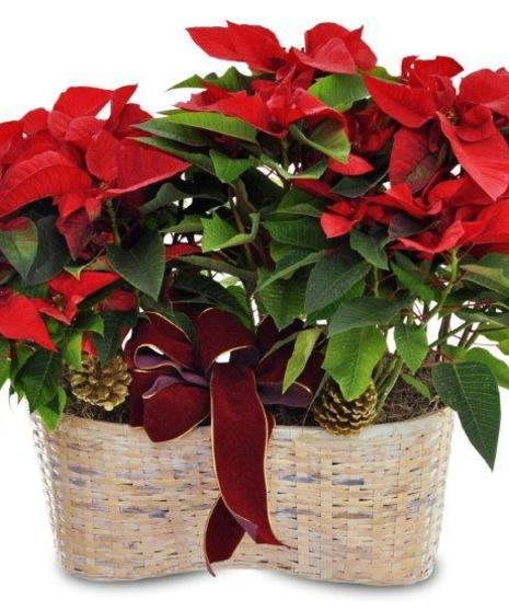 The perfect plant to say "Happy Holidays!" Send two 6" poinsettia plants paired in a stylish basket. Know that special someone will indeed have a merry day!